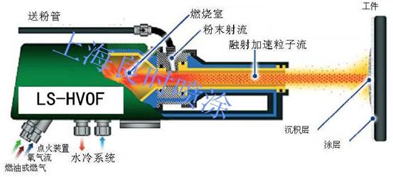 超音速融射具有速度高、温度低、沉积率高、结合强度高、材料的还原性能好、涂层成分易控制的优点,因此被广泛应用于冶金(如辊类、轴类风机叶片)、化工(阀门、反应釜、管道、轴)、电力(锅炉四管、风机叶片)、石油(抽油泵、活塞、液压柱塞、轴)、造纸印刷(压光辊、机辊筒、涂布辊、烘缸、卷纸辊、刀具)、一般机械(轴类、盘类、球类零件)等领域中。